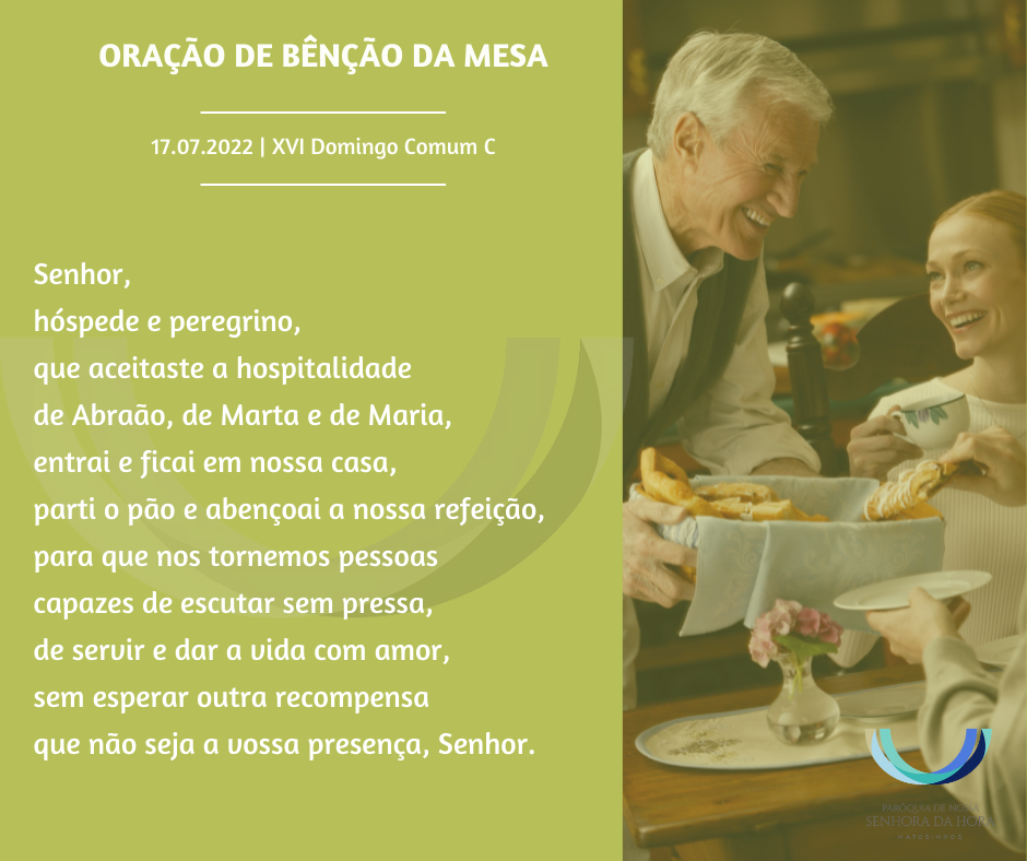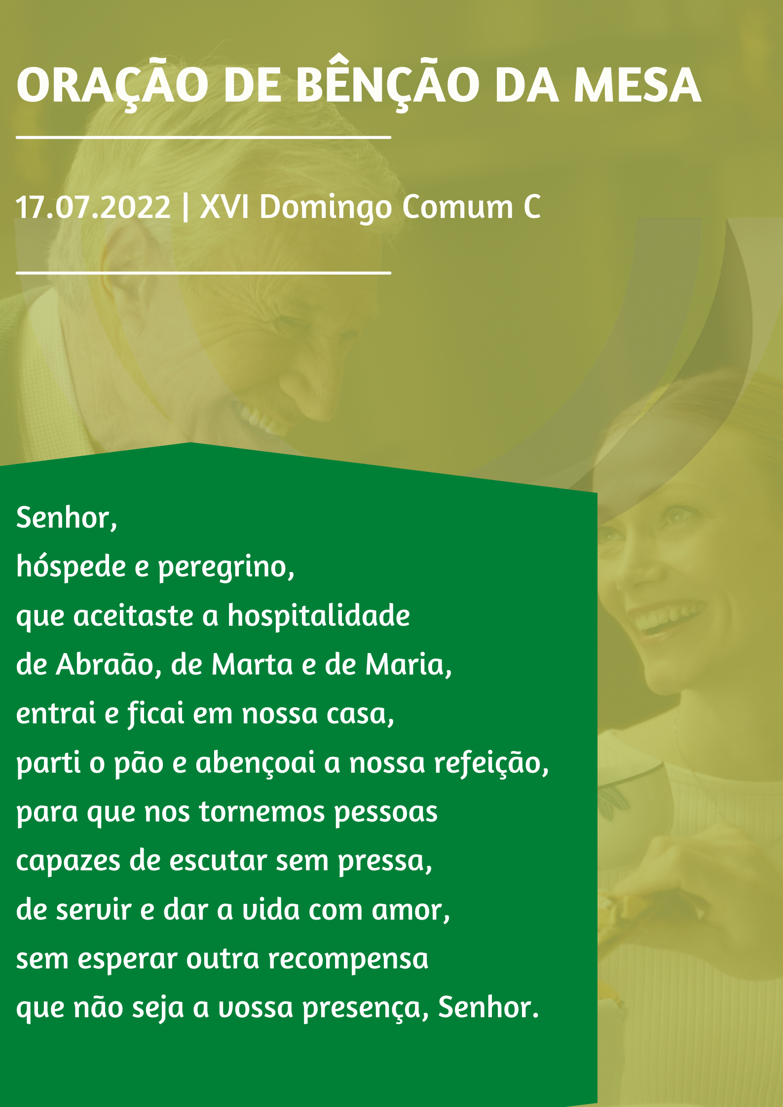 Em tempo de calor e de férias, a Liturgia da Palavra ensina-nos hoje a cultivar a hospitalidade, o acolhimento cordial, pessoal e pastoral. A hospitalidade generosa de Abraão – que escutaremos na 1.ª leitura – configura-se como uma liturgia do acolhimento, uma festa da alegria do encontro à mesa. A hospitalidade de Marta e de Maria – no Evangelho – mostra-nos que a qualidade do acolhimento não está tanto na qualidade do prato, mas na escuta ativa. A nós, como a Abraão e aos discípulos de Emaús, compete-nos estar atentos e dizer: «Senhor, não passeis adiante, sem parar... sem ficar connosco» (Gn 18,3; Lc 24,29)... porque todos precisamos de «pão para restaurar as força e podermos continuar o caminho».
