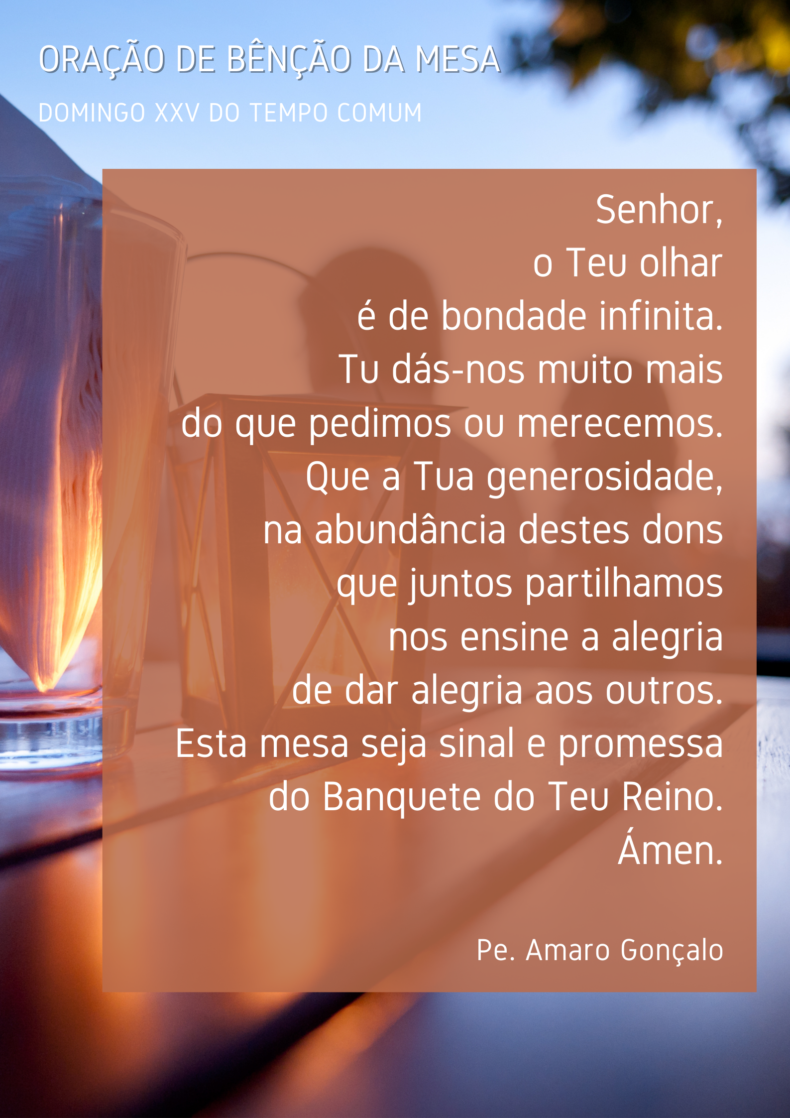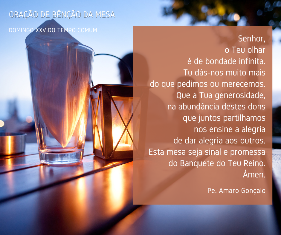 Quarto, este proprietário não paga à hora nem a horas! Começa pelos últimos. Dá o mesmo a quem é da casa e a quem acabou de chegar. Numa palavra, Jesus parece dizer. A medida de pagamento não é o nosso mérito, a nossa produção. A medida de retribuição é a graça de Deus, a bondade do Seu olhar de Amor sobre nós. Para Deus, conta mais a prontidão da resposta do que o tempo de serviço. Perguntemo-nos, por fim: Sentimo-nos, na Igreja, «os donos da quinta» com direitos de preferência, porque, por aqui andamos há muito tempo, ou temos a largueza e a boa pressa do coração, para tomar a iniciativa, convidar, envolver, acompanhar, frutificar e festejar com todos?
