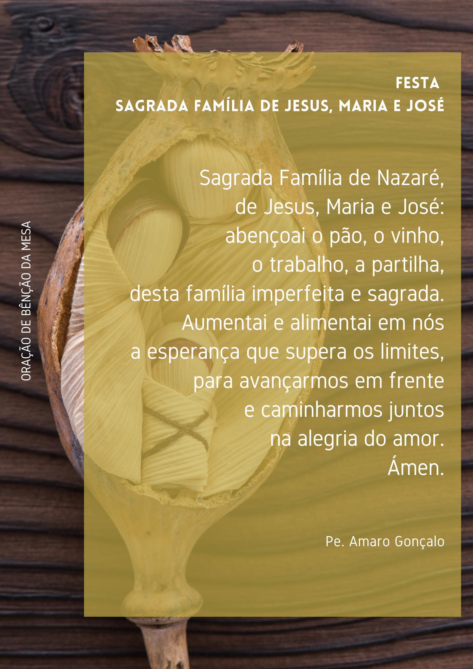 IV. Avancemos, famílias, porque todas as famílias, à imagem da Sagrada Família, são, ao mesmo tempo, sagradas e imperfeitas. Continuemos a caminhar, com alegria, animando-nos uns aos outros! Que esta alegria do amor em família se torne o júbilo da Igreja e a esperança de um mundo novo!