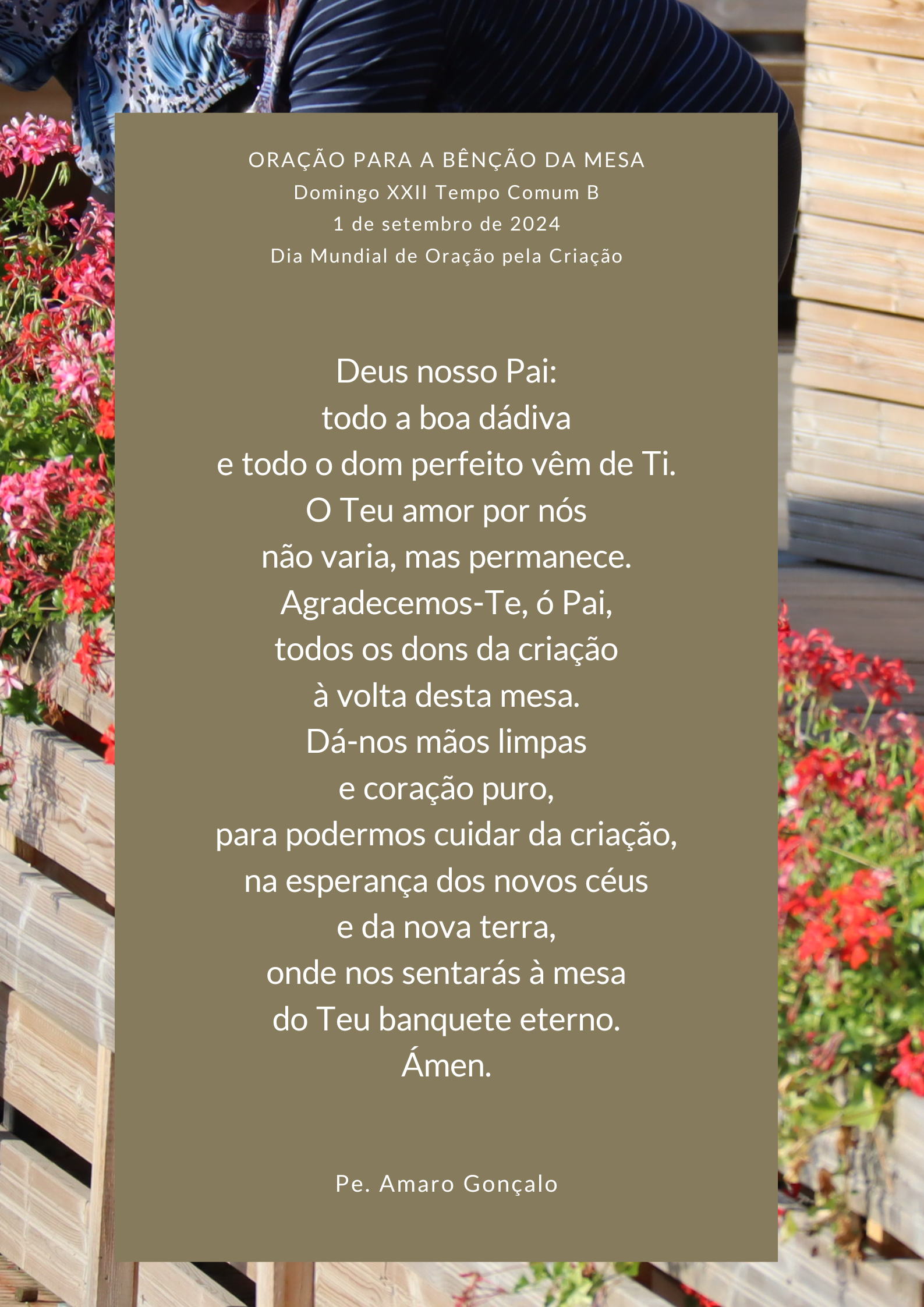 1.Despedimo-nos de agosto, o mês por excelência do verão, das férias, das viagens, do gozo e da paz com a Criação, que nos oferece o sol e a sombra, a comida e a bebida, a boa água e o bom vinho, o campo, a montanha e o mar. A Palavra de Deus recorda-nos – neste contexto – que “toda a boa dádiva e todo o dom perfeito vêm do alto, descem do Pai das luzes, no qual não há variação nem sombra de mudança” (Tg 1,17). Aliás, a polémica questão da impureza, colocada por alguns fariseus a Jesus, dá-lhe a oportunidade de declarar puros todos os alimentos (cf. Mc 7,9), porque Deus fez boas todas as coisas (cf. Gn 1,31). A beleza e a bondade da Criação merecem a nossa grata contemplação.
