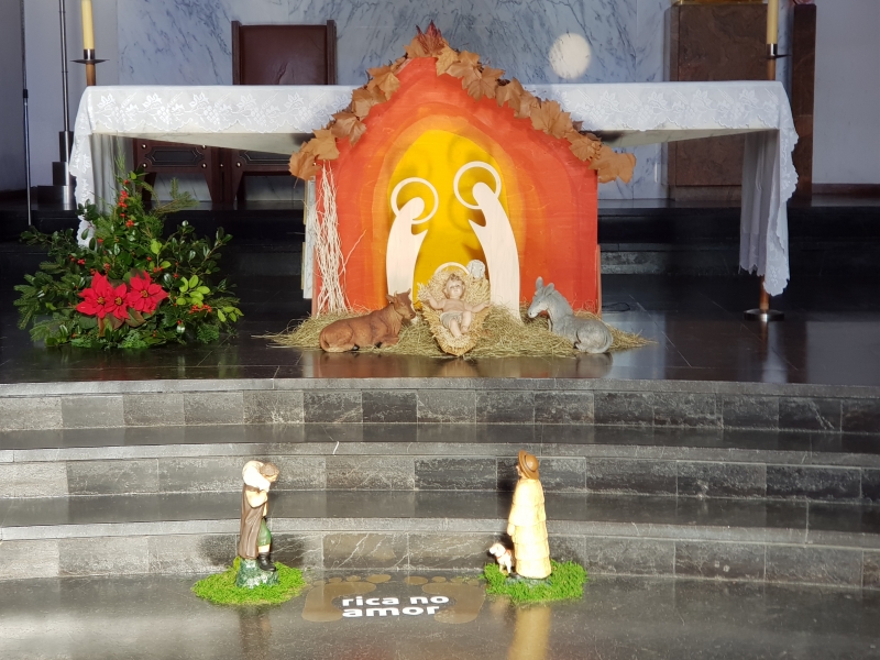 5. Irmãos e irmãs: “Movidos pela Estrela que brilha no amor, / encontramos Maria, José e o Menino, / nosso único salvador! /// Pobre de meios, como uma tenda, / é neste Presépio que nasce a Luz. / E o nosso tesouro escondido é Jesus. /// Vinde, Senhor, e enriquecei-nos, / com os pobres pela casa adentro. // E brilharemos como Estrelas no firmamento”!