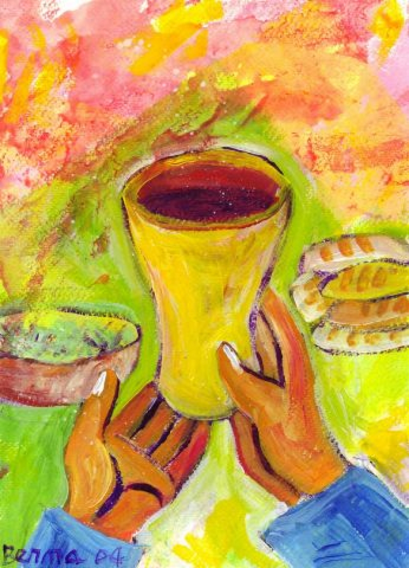 - E qual foi a surpresa? Sobre a mesa, não tinham nada de especial, senão o que é estritamente essencial: o pão e o vinho. Estavam ali, não para encher a barriga, mas para celebrar, agradecer e fortalecer a sua amizade com Jesus, para fazer uma aliança, um compromisso, um pacto, um acordo… com Ele, antes de Jesus partir para o Pai, dando a vida por nós. E o pacto era este: Jesus diz-lhes: “dou a minha vida por vós, neste corpo entregue e neste sangue derramado. Fazei isto em memória de mim”. E nós, desde a sua Páscoa e até à sua última vinda, celebramos a Eucaristia, para fazer memória agradecida da sua amizade e participar do dom da Sua vida, dando a nossa vida pelos outros.