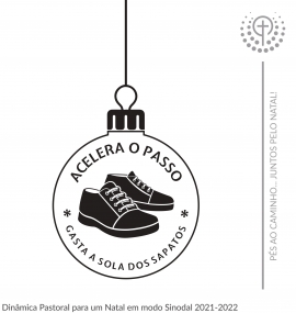 Pés ao caminho. Juntos pelo Natal. Este é o lema da nossa dinâmica pastoral, para um Natal em modo sinodal. Para esta última semana do Advento, às portas do Natal, o desafio é este: Acelera o passo! Gasta a sola dos sapatos. Deixemo-nos mover pelo exemplo de Maria: depois do seu “sim”, que dá origem à estação e à gestação do Natal,Maria percorre 120 km de Nazaré à Judeia, atravessando montanhas,ao encontro da sua prima Isabel. É um caminho de gestação e de esperança, pois leva no seu seio o Menino Deus, que Se faz Homem. É um caminho íngreme, desconhecido, mas que Ela percorre com audácia e coragem criativa, pois também nas asperezas do caminho crescem flores brancas de esperança. Com o seu exemplo, a Virgem Maria incita-nos a sairmos de casa, da nossa zona de conforto, para levarmos às periferias do nosso mundo, aos mais sós e distantes, a presença do Senhor.