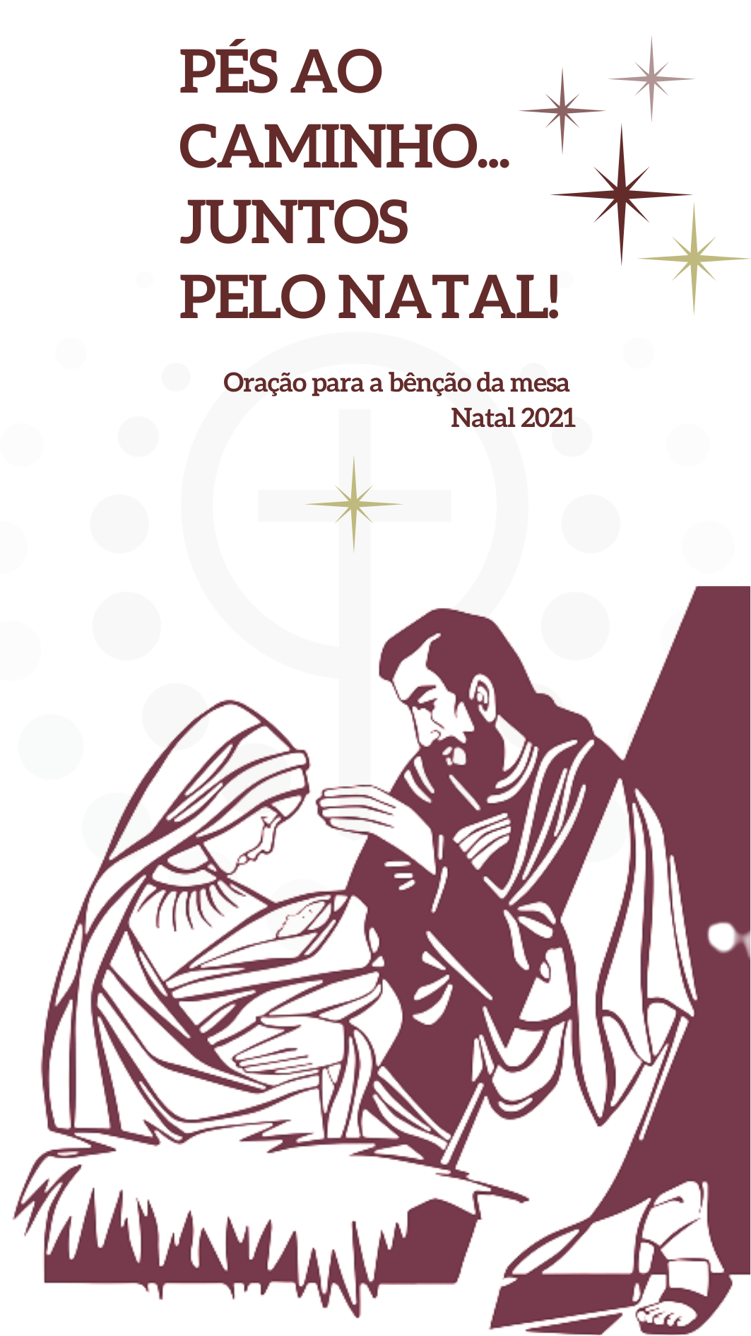 1. Pés ao caminho. Juntos pelo Natal.E o que é o Natal de Jesus senão a notícia inaudita do inesperado acontecimento pelo qual Deus Se fez Homem, para Se tornar irmão e companheiro desta nossa humanidade peregrina? Eis-nos agora e sempre juntos, diante do Presépio: o Homem diante de Deus e Deus diante do Homem. Eis-nos diante de José, que vemos com bolhas nos pés, apoiado no cajado, cansado da caminhada silenciosa, sem palavras para narrar o sonho divino que se cumpre. Eis-nos diante de Maria, a Mãe do divino infante, ainda a aprender a embalar o seu Menino, envolto em panos e deitado na manjedoura. E imaginemos ainda os pastores, com os seus pés fustigados pelo mato, a chegarem ao Presépio e a descalçarem as sandálias à porta de entrada do curral, porque doravante – eles sentem-no e pressentem-no – entram em terra sagrada!