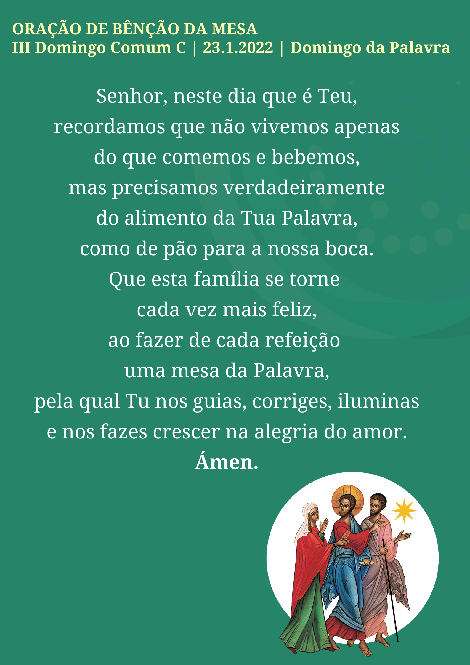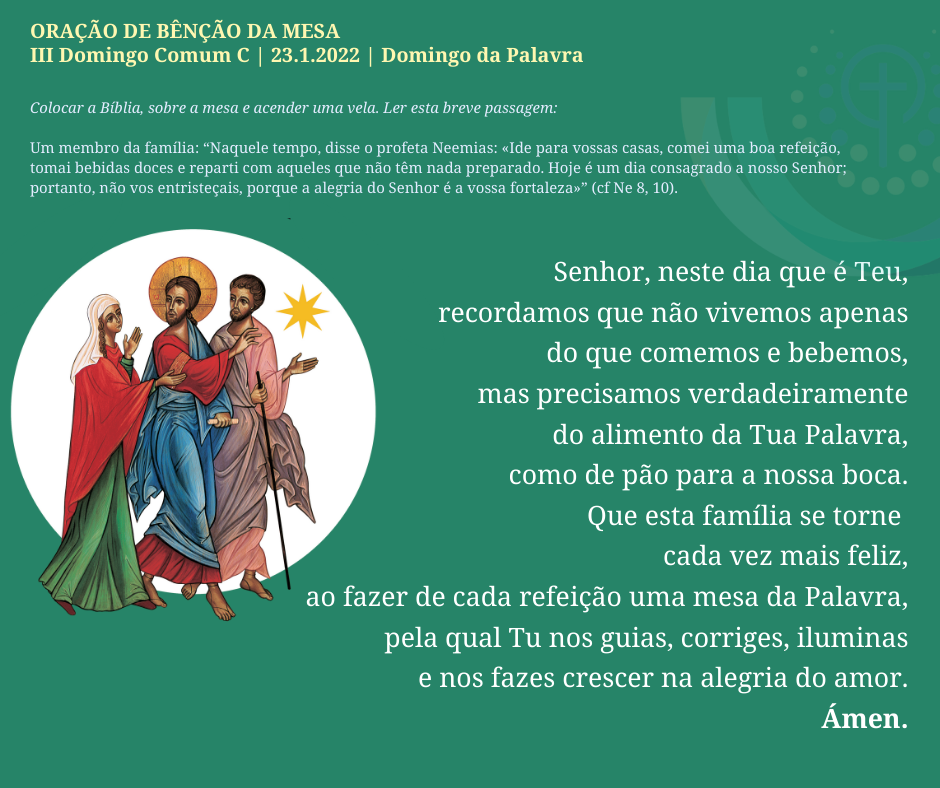 Celebramos hoje, de modo festivo, o Domingo da Palavra. No dia 30 de setembro de 2019, memória litúrgica de São Jerónimo, o Papa Francisco fixou esta data para o Domingo da Palavra: precisamente o dia em que a Igreja celebra o III Domingo do Tempo Comum (Motu proprio Aperuit illis, n.º 3).  O Papa já tinha esclarecido o objetivo deste Domingo da Palavra: “Seria conveniente que cada comunidade pudesse, num domingo do Ano Litúrgico, renovar o compromisso em prol da difusão, conhecimento e aprofundamento da Sagrada Escritura: um domingo dedicado inteiramente à Palavra de Deus, para compreender a riqueza inesgotável que provém daquele diálogo constante de Deus com o seu povo” (Papa Francisco, Bula Misericordia et Misera, n.º 7). Vamos, por isso, nesta celebração, comprometer a nossa vida com esta Palavra e, à luz desta Palavra, rever toda a nossa vida.