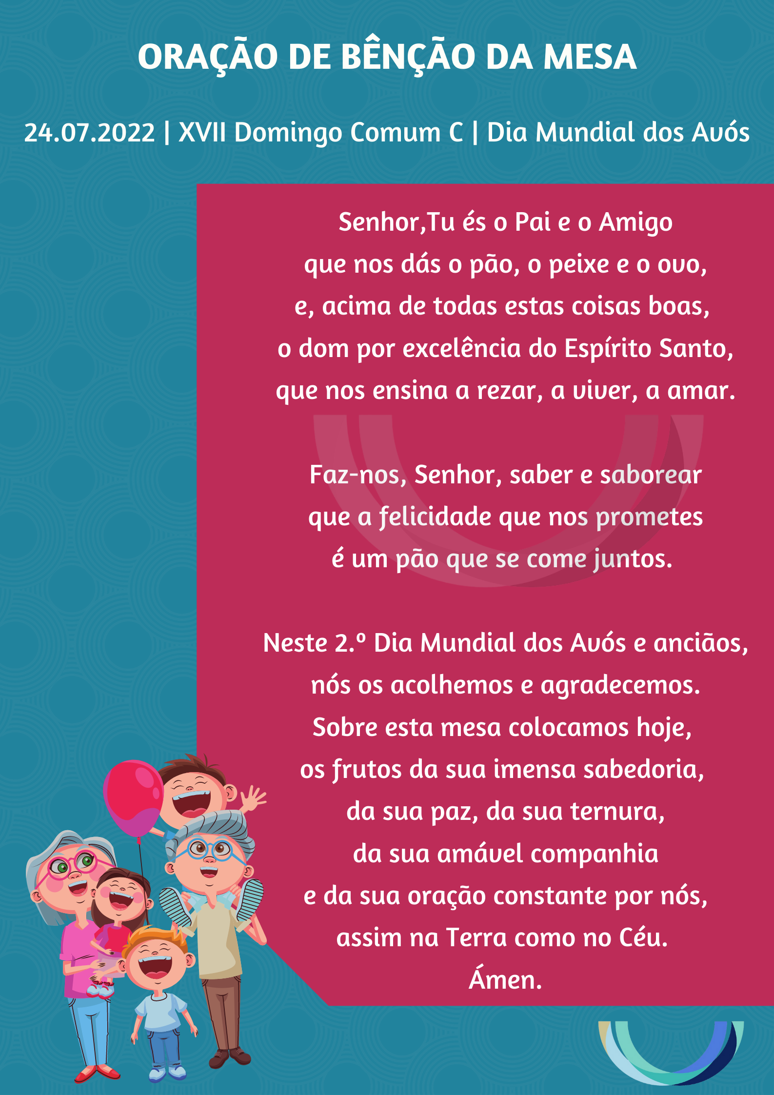 Reunimo-nos para celebrar a Eucaristia, neste XVII Domingo Comum. É também o 4.º Domingo do mês de julho, o mais próximo do dia 26, que é o dia litúrgico em que se faz memória de São Joaquim e de Santa Ana, avós de Jesus. Quis então o Papa Francisco, como o grande «avô do mundo», que este 4.º domingo de julho, fosse celebrado como Dia Mundial dos avós e dos anciãos. É a segunda vez que o fazemos, este ano sob a inspiração de um Salmo, que nos recorda que os filhos de Deus, “dão fruto mesmo na velhice” (Sl 92,15). Um desses frutos maravihos0s é a oração. A oração é uma verdadeira força discreta, na retaguarda, para quem luta e trabalha. Hoje, a Palavra de Deus, desafia-nos a usar este instrumento da oração, para mudar a sorte do nosso mundo. Façamo-lo desde já, contando-nos entre os pecadores, na confiança da misericórdia do Pai, que excede a justiça dos homens.