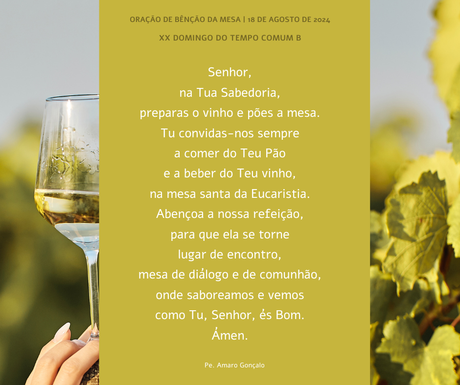 2.º Alguma vez, pelo menos ao domingo, ou em dias de festa, por que não recitar uma breve oração de bênção sobre a mesa?! Façamos da nossa mesa, o que Jesus fez dela: um lugar de diálogo, de encontro, de comunhão, que nos una e reúna na esperança do banquete celeste!