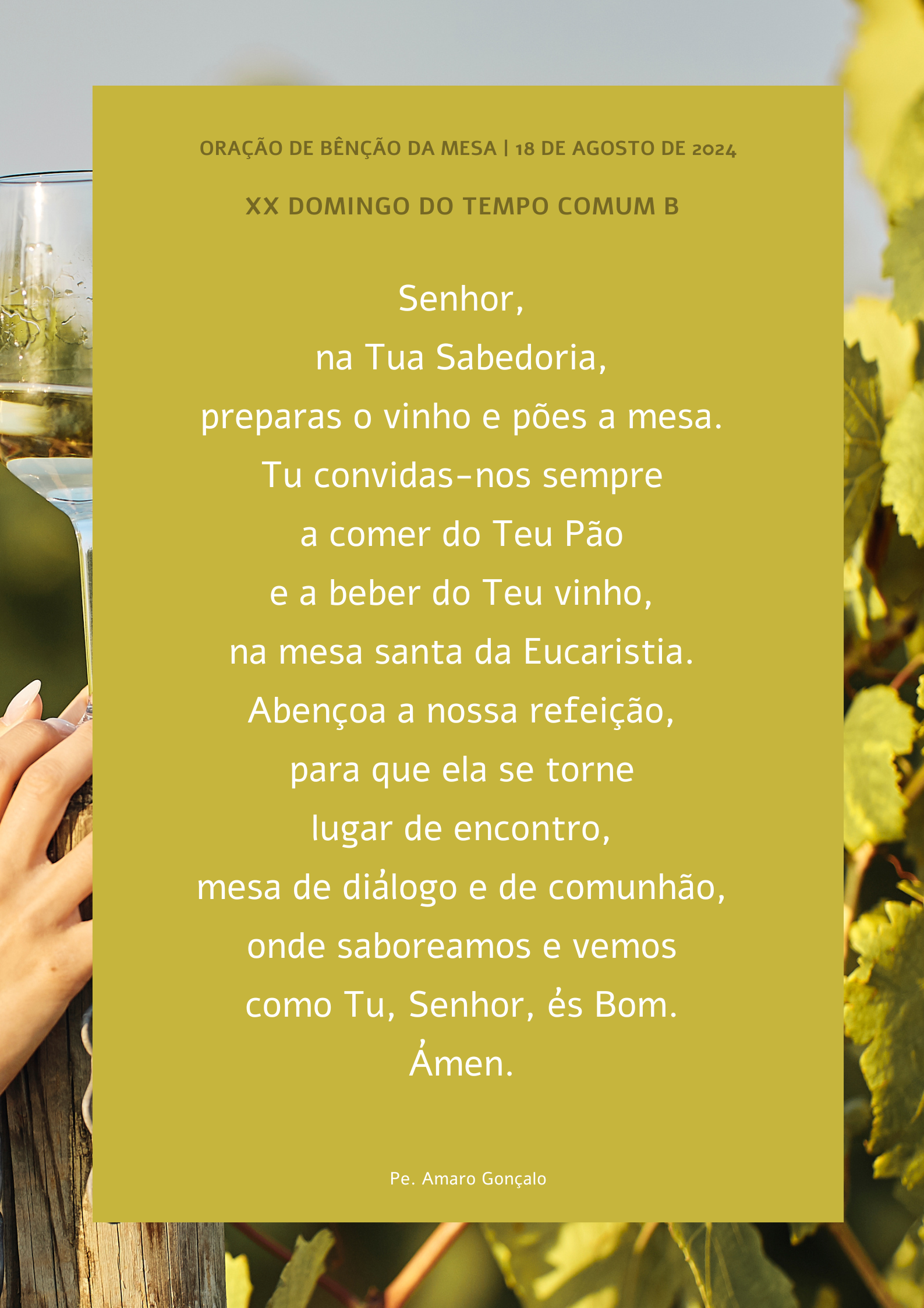Irmãos: numa palavra, “quer comais, quer bebais, quer façais qualquer outra coisa, fazei tudo para a glória de Deus” (1 Cor 10, 31). Em tudo e sempre, da Eucaristia à gastronomia, no pico deste verão, “saboreai e vede como o Senhor é bom” (Sl 33/34)! Que mais poderíamos desejar?
