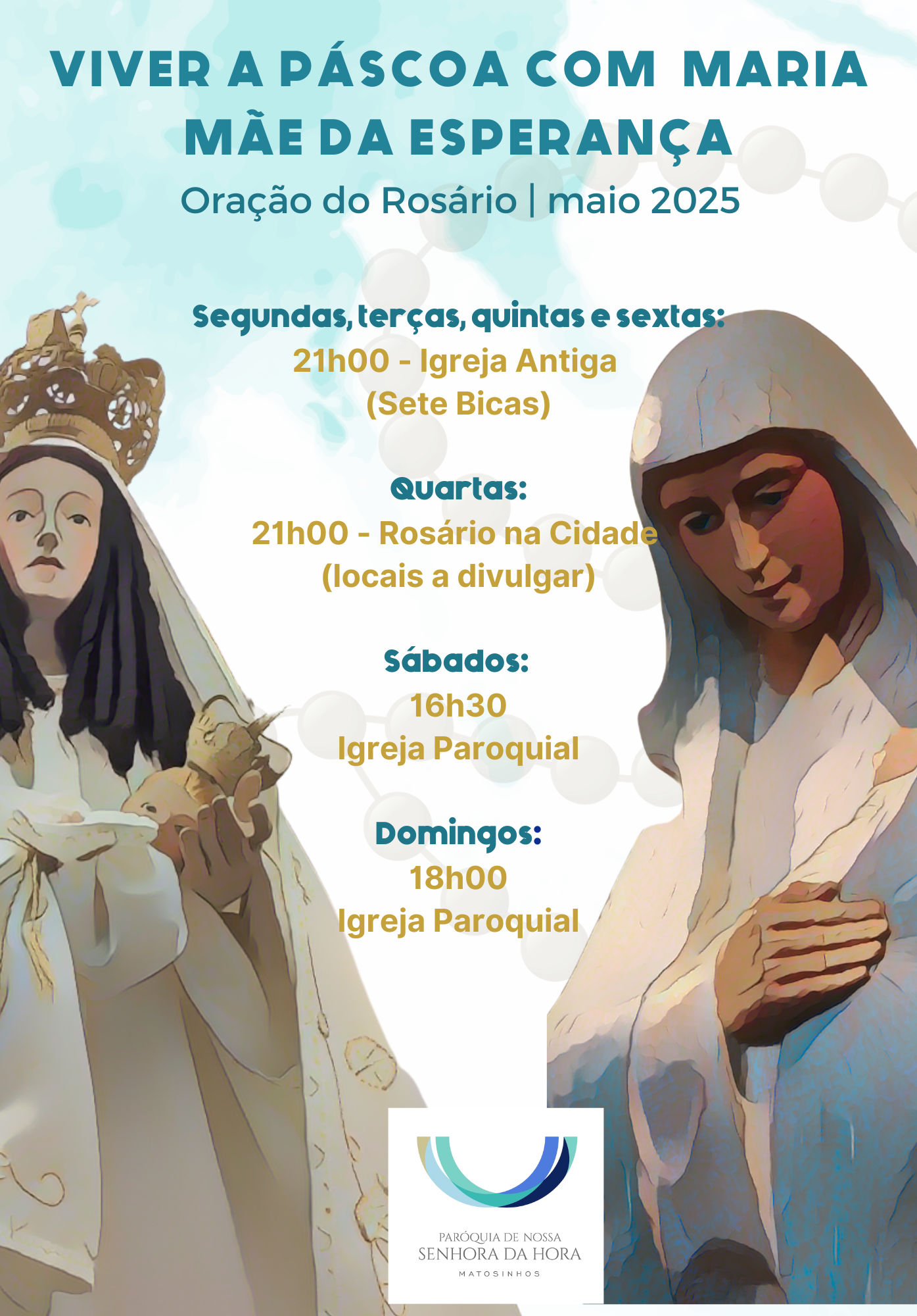 É nosso propósito, na variedade dos 20 mistérios do Rosário, aprofundar a nossa reflexão sobre a virtude teologal da esperança e acentuar, sempre que possível, a figura exemplar de Maria, como Mãe da esperança.