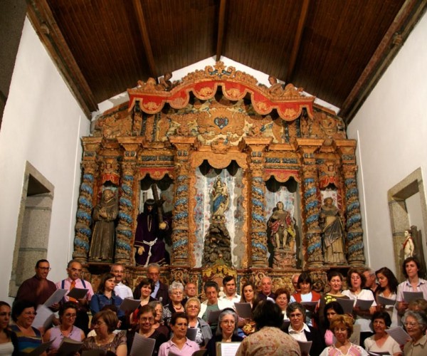 Quando em 1996 nos deslocamos à capela para fotografá-la, estava muito danificada e servia para arrumos. Para fotografar o altar tivemos que desviar alguns objectos.