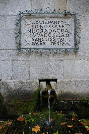 Segundo a tradição, o sítio exato onde a Virgem Nossa Senhora da Hora apareceu foi no lugar Mãe d’água, cujo caudal tinha, na origem, várias nascentes, daí o topónimo de Sete Bicas. Trata-se certamente da tentativa de cristianização de um local pagão.